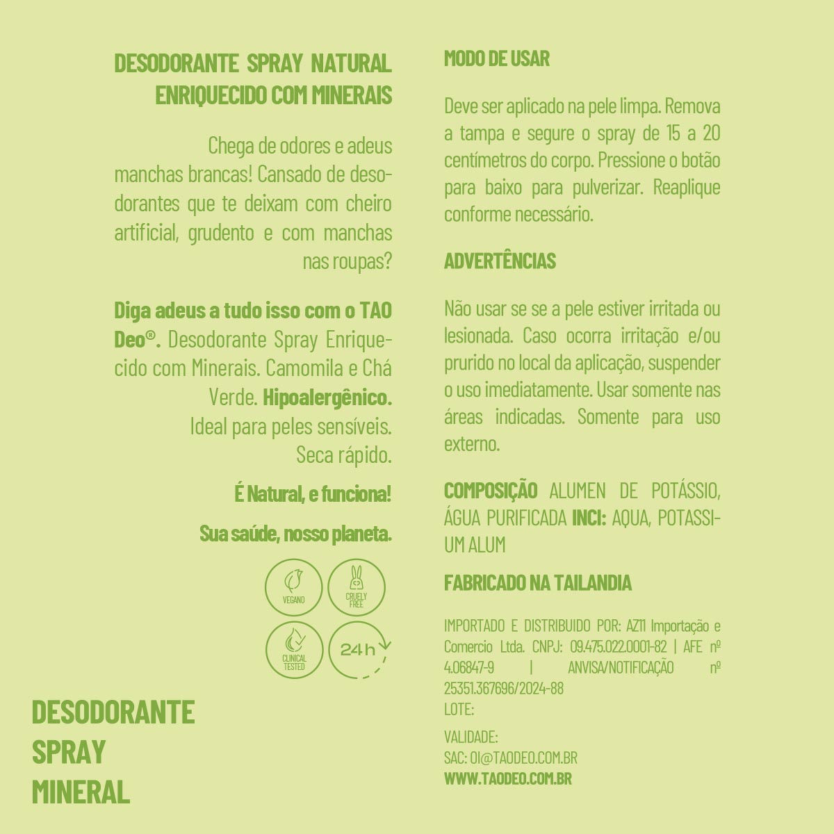 Alúmen de potássio, água purificada, fenoxietanol, extrato de camomila, extrato de chá verde, 1,3-propanodiol, glicerina