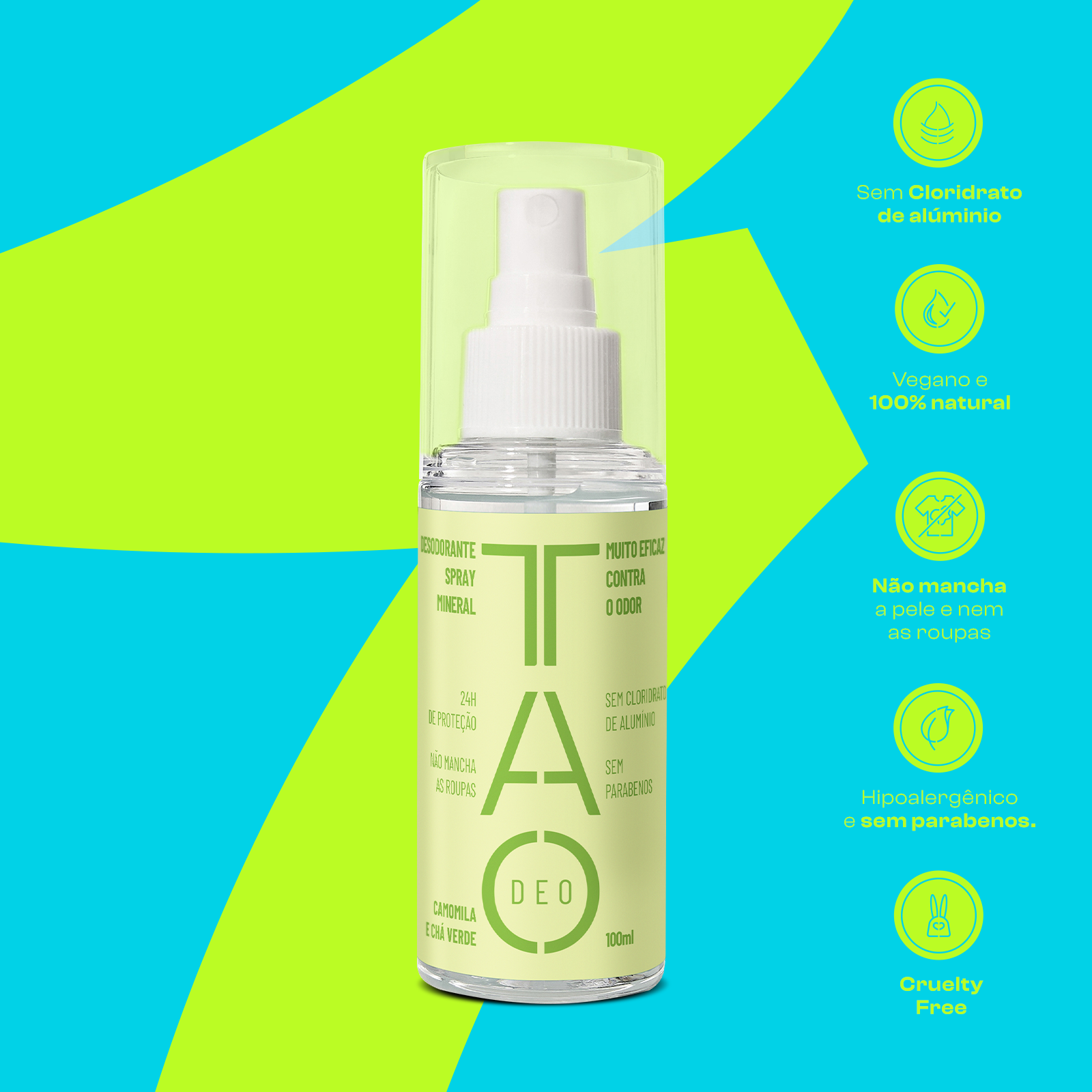 O Desodorante Natural Spray 100ml Camomila & Chá Verde foi desenvolvido para quem busca cuidado natural e eficácia diária. Com extratos de camomila e chá verde, sua fórmula 100% vegana e livre de alumínio, parabenos e fragrâncias artificiais proporciona proteção confiável contra odores enquanto acalma e refresca a pele.